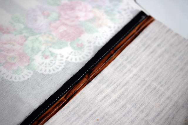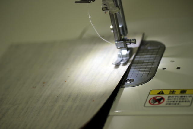 芯を貼った側を上にして縫います。内布などの芯を貼っていない側を上にすると、伸びて余っていくことがあるので。