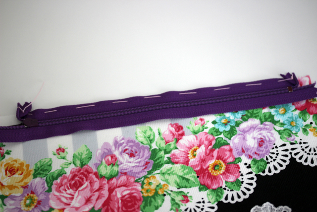 ファスナーをつけていきます。ファスナーは端を合わせるのではなく、中央を合わせるイメージで配置したほうがずれにくいです。